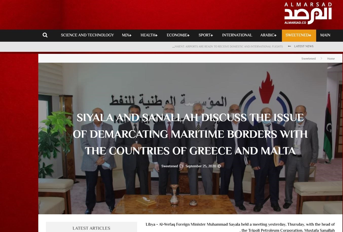 Η δήλωση αυτή έγινε στο πλαίσιο της συνάντησης του Σαϊάλα με τον επικεφαλής της Πετρελαϊκής Εταιρείας της Λιβύης Μουσταφά Σανάλα. Σύμφωνα με το γραφείο της κυβέρνησης της Τρίπολης (Al-Wefaq), η συνάντηση αφορούσε διάφορα θέματα, με το πιο σημαντικό να είναι το ζήτημα της οριοθέτησης των θαλάσσιων συνόρων με Ελλάδα και Μάλτα και τον τρόπο επίλυσης αυτής της διαφοράς. Ο τρόπος διευθέτησης θέλησαν να είναι φιλικά προσκείμενος στο συμφέρον της λιβυκής κυβέρνησης Εθνικής Συμφωνίας, χωρίς όμως το ζήτημα να έχει την έγκριση του εκλεγμένου κοινοβουλίου της Λιβύης.