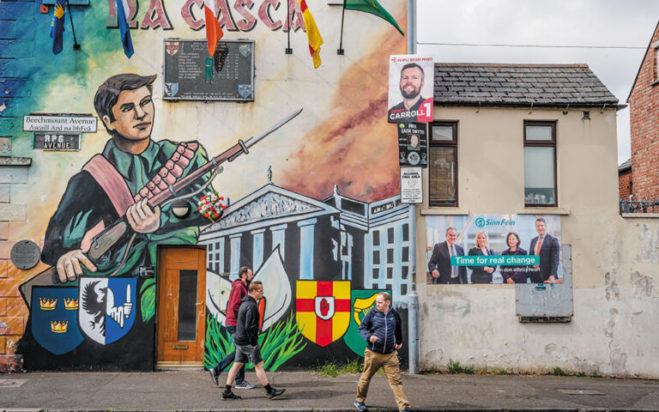 Το Σιν Φέιν, που ζητά την επανένωση της επαρχίας με τη Δημοκρατία της Ιρλανδίας, έγινε η πρώτη πολιτική δύναμη μετά τις εκλογές της Πέμπτης, στις οποίες εξασφάλισε 27 έδρες στο 90μελές τοπικό κοινοβούλιο. Οι ενωτικοί του συντηρητικού κόμματος DUP, που τάσσονται υπέρ της παραμονής στο Ηνωμένο Βασίλειο, εκλέγουν 25 βουλευτές.