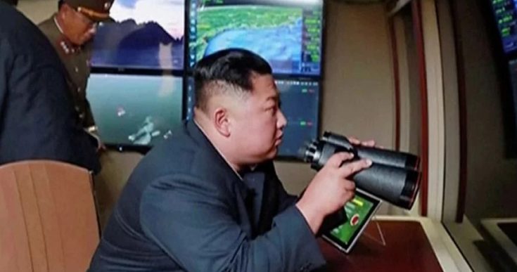 Φωτογραφίες που δημοσιεύθηκαν στην εφημερίδα Rodong Sinmun δείχνουν έναν χαμογελαστό Κιμ — περιτριγυρισμένο από ένστολους αξιωματούχους — να πανηγυρίζει καθώς παρακολουθεί αυτό που περιγράφεται ως δοκιμαστική βολή του όπλου.