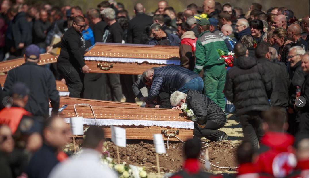 “Η πόλη είναι σε κατάσταση σοκ, όλα αυτά τα παιδιά χάθηκαν. Είναι μια τόσο μεγάλη τραγωδία που δεν θα μπορέσουμε ποτέ να ξεπεράσουμε”, δήλωσε ο Luka Anastasov, 60 ετών, καθώς επέστρεφε από τις κηδείες στο. Αντίστοιχες τελετές πραγματοποιήθηκαν και σε άλλες πόλεις, σε ολόκληρη τη χώρα.