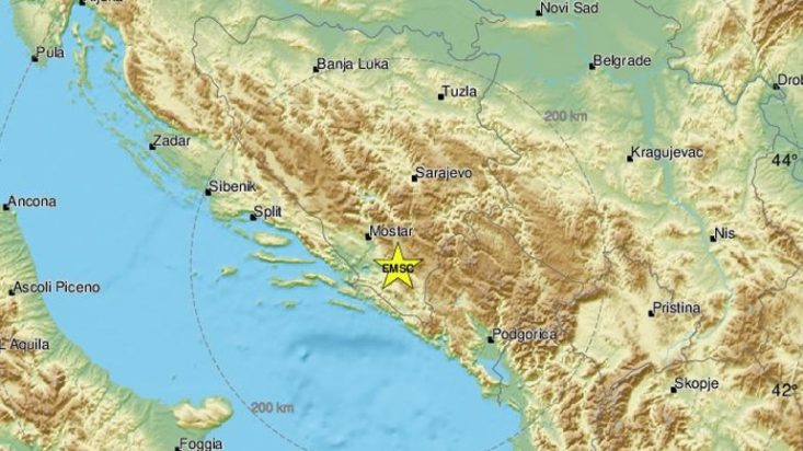 Ισχυρή σεισμική δόνηση ισχύος 5,7 βαθμών της κλίμακας ρίχτερ, σύμφωνα με το αμερικανικό ινστιτούτο γεωλογικών ερευνών (USGS), έπληξε την Παρασκευή (22/04) το νότιο τμήμα της Βοσνίας, με αποτέλεσμα νέα να χάσει τη ζωή της, αρκετοί πολίτες να τραυματιστούν και να σημειωθούν εκτενείς υλικές ζημιές, σύμφωνα με βοσνιακά μέσα ενημέρωσης.