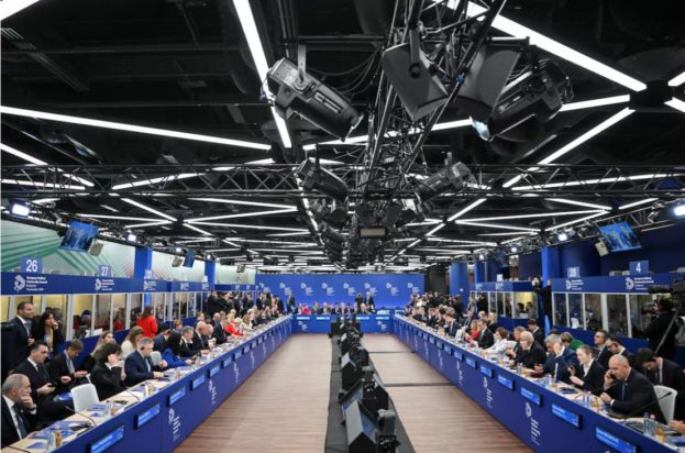 Πρόκειται για την 5η Σύνοδο της Ευρωπαϊκής Πολιτικής Κοινότητας, η οποία διεξάγεται σήμερα στο στάδιο «Ferenc Puskas» στην Βουδαπέστη.