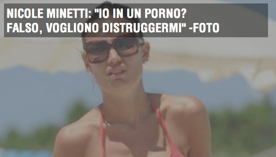 Τον γύρο των ελληνικών blog και site κάνει η είδηση ότι η πρώην οδοντίατρος του Σίλβιο Μπερλουσκόνι θα αφήσει την πολιτική και θα γυρίσει ερωτική ταινία με τον Δημήτρη Σειρηνάκη.Η Nicolle Minetti φαίνεται να έχει κάνει και δήλωση περί του θέματος λέγοντας: “Από την στιγμή που μπήκα στην πολιτική μόνο προβλήματα είχα. Πριν από λίγες μέρες μου έκαναν πρόταση για να παίξω σε ταινία πορνό και σκέφτομαι πολύ σοβαρά να τους πω ναι”.Όμως απ’ ότι φαίνεται πως τα ελληνικά site δεν έκαναν έναν κόπο να διαβάσουν τα ιταλικά δημοσιέυματα, τα οποία διαψεύδουν το γεγονός!