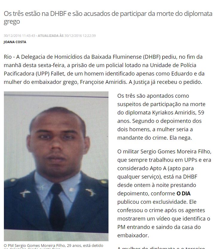 Ένταλμα σύλληψης εξέδωσαν επίσης για έναν αστυνομικό ο οποίος ονομάζεται Sergio Gomes Moreira Filho και είναι 29 ετών καθώς και για έναν ακόμη άντρα που ονομάζεται Eduardo.