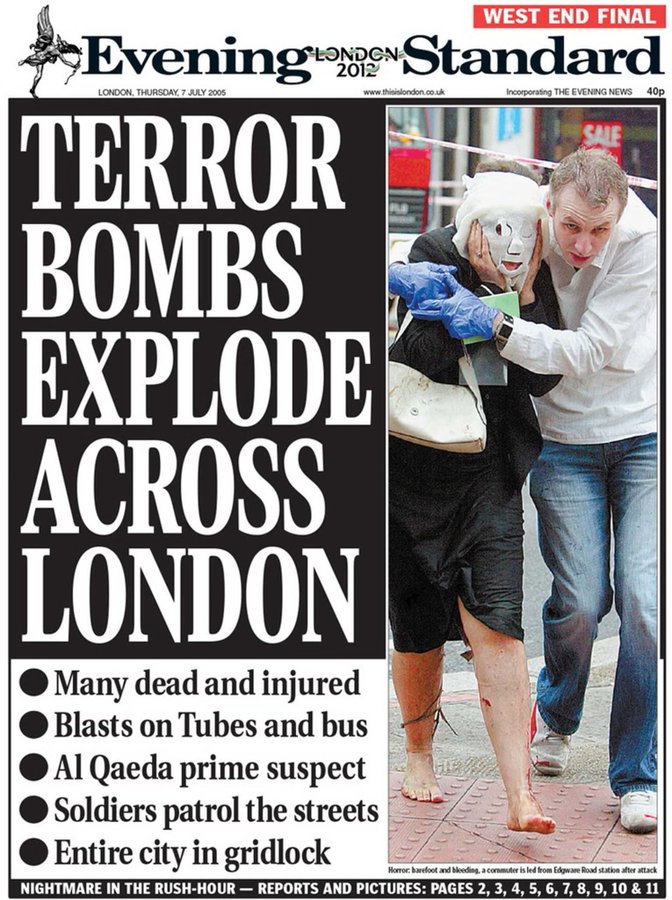 Το πρωί της 7ης Ιουλίου 2005 τέσσερις Βρετανοί ισλαμιστές, εμπνευσμένοι από την αλ Κάιντα, πυροδότησαν εκρηκτικούς μηχανισμούς σε τρεις συρμούς του μετρό και ένα διπλό λεωφορείο την ώρα αιχμής στο κέντρο του Λονδίνου, προκαλώντας τον θάνατο 52 ανθρώπων και τον τραυματισμό περισσότερων από 700.
