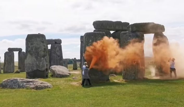 Ακτιβιστές της οργάνωσης Just Stop Oil, στην Βρετανία, ψέκασαν το Stonehenge με πορτοκαλί μπογιά, ενώ άνθρωποι που βρίσκονταν εκείνη την στιγμή στο μνημείο προσπάθησαν να τους απομακρύνουν.