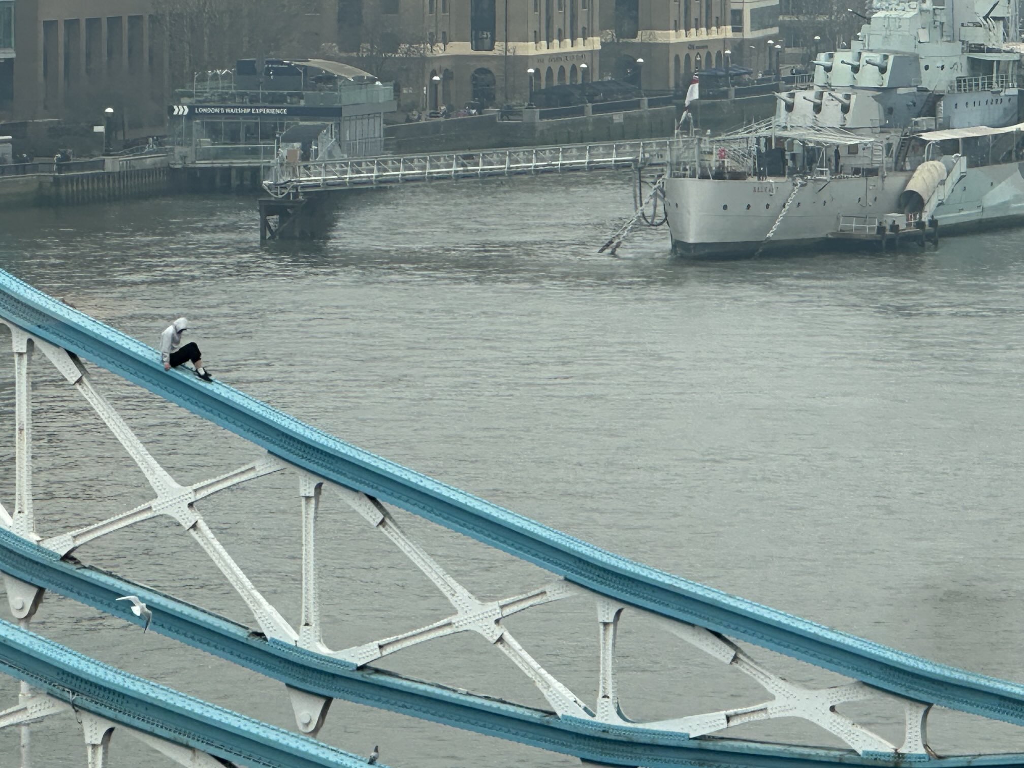 Tower Bridge closed as person climbs up iconic landmark and sits on railings https://t.co/NgtiL7yHyt pic.twitter.com/C84UVY4nWI