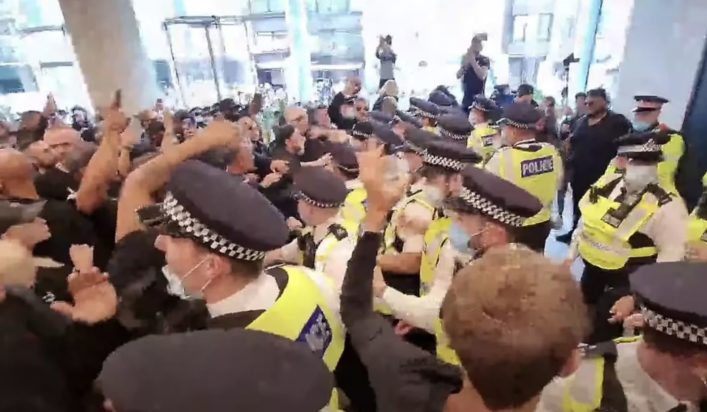 Αντιεμβολιαστές εισέβαλαν σε κτίριο του Λονδίνου, όπου στεγάζονται ειδησεογραφικά κανάλια της Βρετανίας εκφράζοντας την αντίθεσή τους στους περιορισμούς και στην εκστρατεία εμβολιασμού κατά της Covid-19.