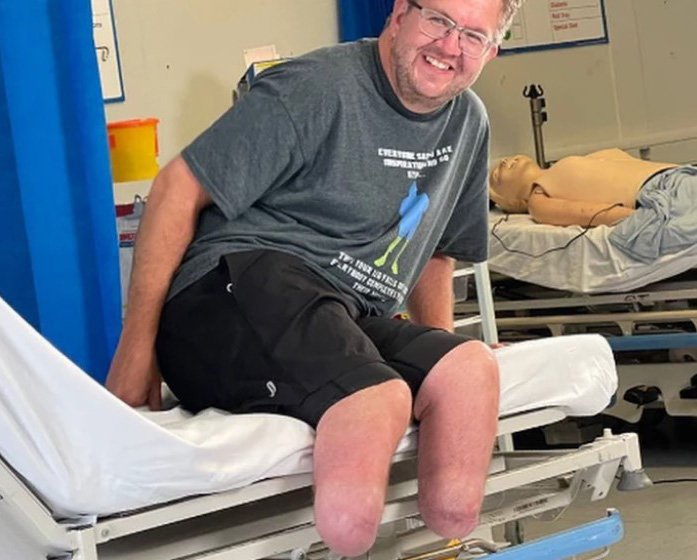 Σημείωσε επίσης ότι ανάρρωσε πολύ γρήγορα. «Μου είπαν ότι θα μου πάρει περίπου τρεις μήνες για να μπορέσω να περπατήσω. Το έκανα σε τρεις ώρες», και πρόσθεσε: «Μισώ που το λέω, αλλά είμαι πιο δραστήριος από τότε που έχασα τα πόδια μου απ’ ό,τι πριν».