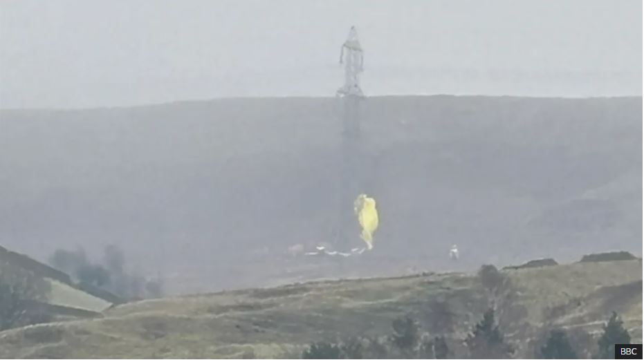 Η Stephanie Mills, από τη σχολή ιππασίας Dickey Steps, είπε στο BBC Radio Manchester ότι υπήρχαν πολλά οχήματα έκτακτης ανάγκης στην περιοχή και ότι μπορούσε να δει κανείς ένα τεράστιο κίτρινο αλεξίπτωτο προσδεμένο στον πυλώνα.