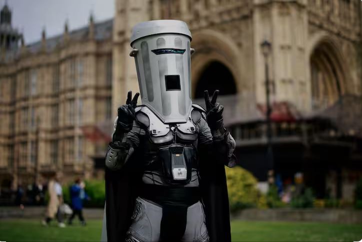 Αυτή τη φορά, ο πρωθυπουργός Ρίσι Σούνακ θα βρεθεί αντιμέτωπος στην περιφέρειά του στο Ρίτσμοντ με έναν υποψήφιο αυτού του κόμματος αλλά και με τον κόμη Μπινφέις (δηλαδή «Σκουπιδόφατσα»), τον αυτοαποκαλούμενο «διαγαλαξιακό πολεμιστή» που κυκλοφορεί με μια εντυπωσιακή γκριζόμαυρη στολή και ένα κράνος που θυμίζει κάδο απορριμμάτων.