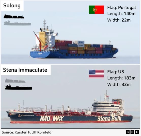 Καύσιμο για αεριωθούμενα μετέφερε το δεξαμενόπλοιο MV Stena Immaculate, που συγκρούστηκε, στα ανοιχτά της Βρετανίας με το φορτηγό πλοίο Solong, το οποίο εκτός των άλλων εμπορευμάτων είχε και 15 εμπορευματοκιβώτια με κυανιούχο νάτριο.