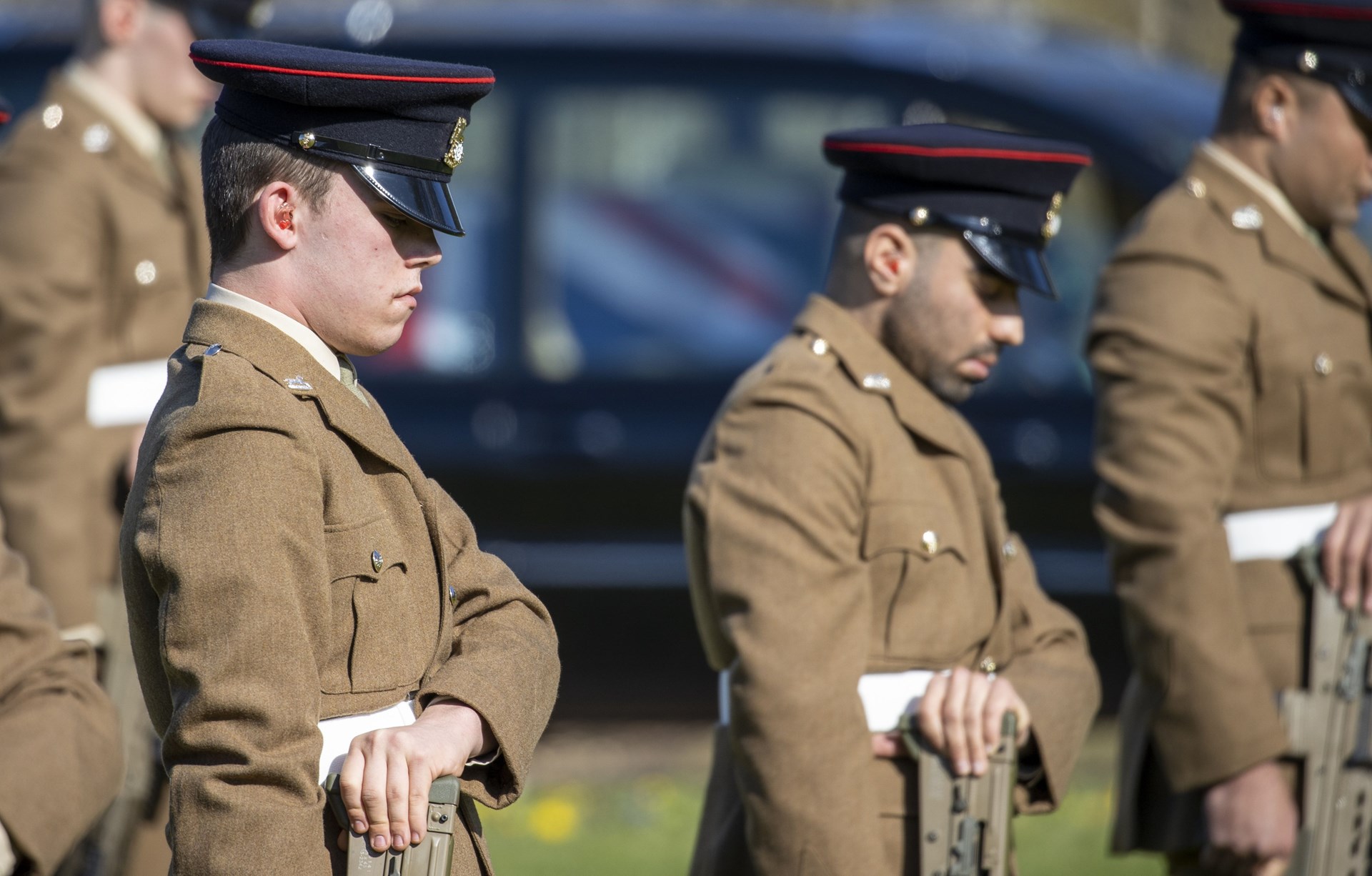 Το φέρετρο του βετεράνου Τομ Μουρ, καλυμμένο με την βρετανική σημαία στην οποία ήταν τοποθετημένα τα μετάλλιά του, μεταφέρθηκε στο αποτεφρωτήριο του Μπέντφορντ από έξι στρατιώτες του Τάγματος του Γιορκσάιρ, που διαδέχθηκε το τάγμα Πεζικού στο οποίος ο ίδιος είχε υπηρετήσει κατά την διάρκεια του Β΄ Παγκοσμίου Πολέμου.