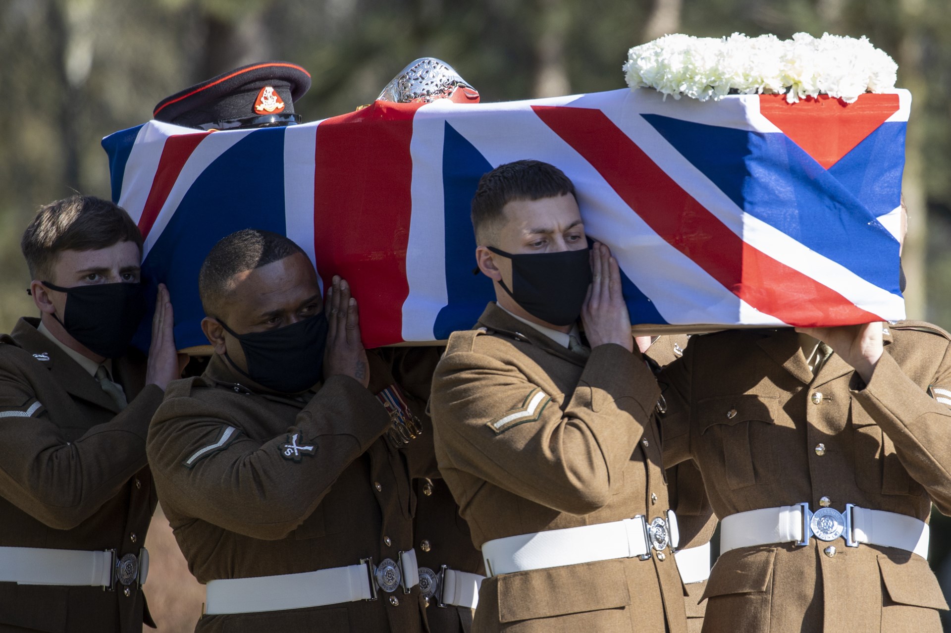 Εξαιτίας των περιοριστικών μέτρων που ισχύουν στο Ηνωμένο Βασίλειο για την αντιμετώπιση της επιδημίας, μόνο οκτώ μέλη τη οικογενείας του παρέστησαν στην τελετή.