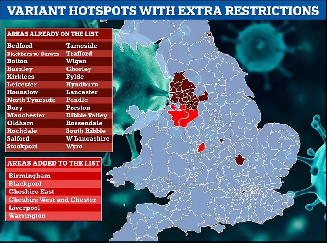 Ο Τζόνσον, σύμφωνα με το ΑΠΕ-ΜΠΕ, υποστήριξε ότι, λόγω της κυκλοφορίας της παραλλαγής Δέλτα, αν δεν έκανε τίποτα, οι εισαγωγές σε νοσοκομεία θα μπορούσαν να φτάσουν ακόμη και στο επίπεδο στο οποίο ήταν κατά το πρώτο κύμα της πανδημίας. Με βάση το σχέδιο που είχε ανακοινώσει ο Τζόνσον τον Φεβρουάριο, οι περισσότεροι περιορισμοί θα αίρονταν στις 21 Ιουνίου, θα άνοιγαν δηλαδή πλήρως οι παμπ, τα εστιατόρια, τα νάιτκλαμπ και άλλοι χώροι φιλοξενίας. Αυτό τώρα θα γίνει στις 19 Ιουλίου.