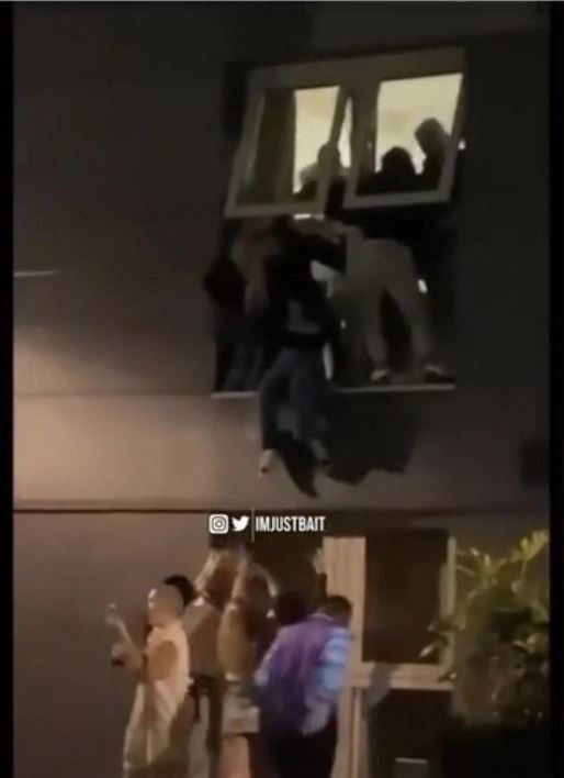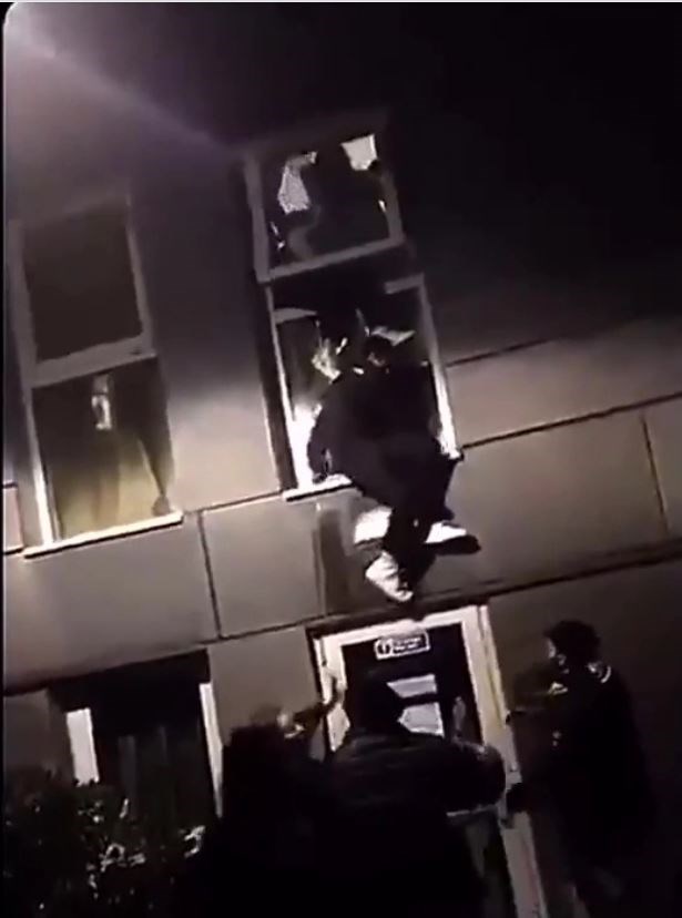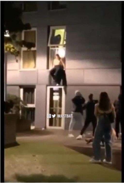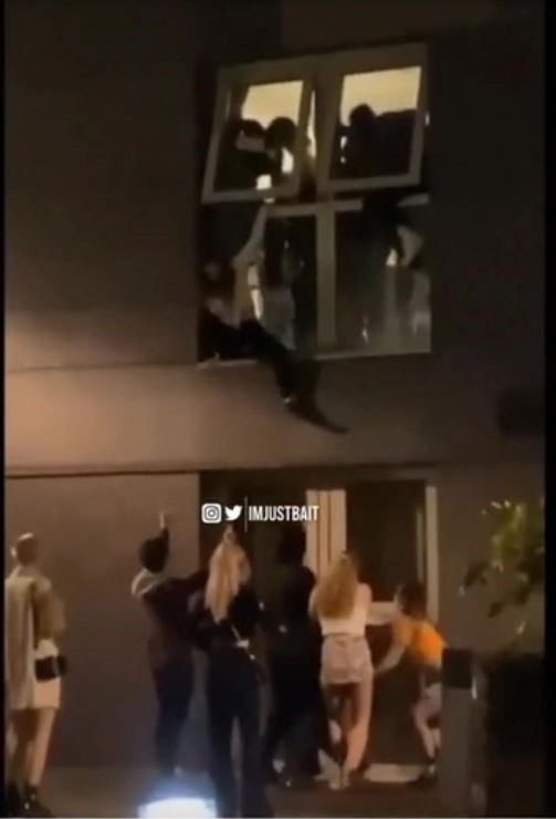 Police attempted to shutdown a party at salford university.. students barricaded the door and jumped out of the window pic.twitter.com/n8G4UNB281