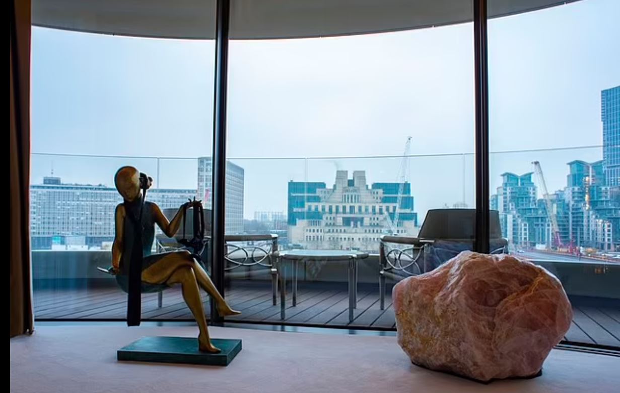Αυτό σημαίνει ότι το διαμέρισμα 325 τετραγωνικών μέτρων, το οποίο έχει θέα στα κεντρικά γραφεία της MI6, στην Βουλή, στο London Eye και στον καθεδρικό ναό του Westminster, βγήκε ξανά στην αγορά. Η πώληση του ακινήτου θα είναι ένα «πικρό ποτήρι» για τον επιχειρηματία, ο οποίος δήλωσε ότι πριν από δύο χρόνια είχε ερωτευτεί το ακίνητο και το είχε γεμίσει με μια μοναδική συλλογή από γιγαντιαία κινεζικά βάζα, υπογεγραμμένες φωτογραφίες του Μοχάμεντ Άλι και του Μάικλ Τζάκσον και γιγαντιαίους χαλαζιακούς λίθους. Η κύρια κρεβατοκάμαρα διαθέτει καμπυλωτά παράθυρα από το δάπεδο μέχρι την οροφή, δύο ντουζιέρες, καθώς και μια μπανιέρα με ελεύθερα πόδια. Υπάρχει επίσης μια κρεβατοκάμαρα επισκεπτών και μια τρίτη κρεβατοκάμαρα.