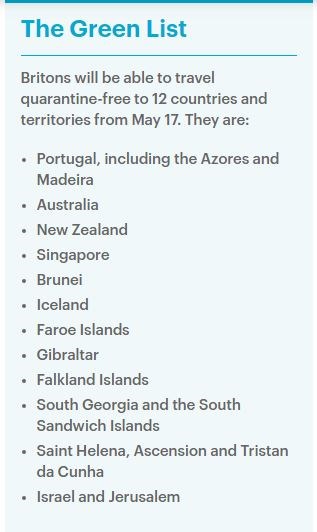 Επιβεβαιώνεται το δημοσίευμα της Sun που ήθελε την Ελλάδα να μένει εκτός της “πράσινης” ταξιδιωτικής λίστας της βρετανικής κυβέρνησης, καθώς πράγματι η χώρας μας βρίσκεται εκτός της συγκεκριμένης λίστας που ανακοίνωσε ο Βρετανός υπουργός Μεταφορών Γκραντ Σαπς. Η βρετανική κυβέρνηση έδωσε το “πράσινο φως” σε 12 χώρες περιλαμβανομένων της Πορτογαλίας, του Ισραήλ, της Νέας Ζηλανδίας, της Ισλανδίας όπου θα μπορούν να ταξιδεύουν οι Βρετανοί από τις 17 Μαΐου. Ωστόσο, Ελλάδα, Ισπανία, Ιταλία και Γαλλία που είναι δημοφιλείς τουριστικοί προορισμοί για τους Βρετανούς έμειναν εκτός.
