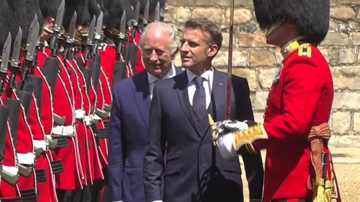 Κατά τη διάρκεια της επίσημης επίσκεψής του στην Βρετανία, ο Γάλλος Πρόεδρος Εμανουέλ Μακρόν προκάλεσε αντιδράσεις για πιθανή παραβίαση του βασιλικού πρωτοκόλλου, όταν περπάτησε μπροστά από τον βασιλιά Κάρολο κατά την επιθεώρηση της βασιλικής φρουράς στο Κάστρο του Ουίνδσορ.