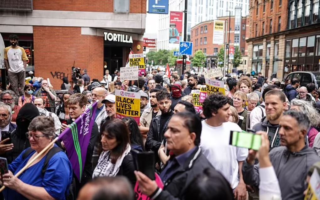 Εκατοντάδες διαδηλωτές απέκλεισαν έναν από τους πιο πολυσύχναστους δρόμους του Μάντσεστερ, στην Βρετανία, διαμαρτυρόμενοι για τον άγριο ξυλοδαρμό άνδρα από αστυνομικούς στο αεροδρόμιο της πολής.