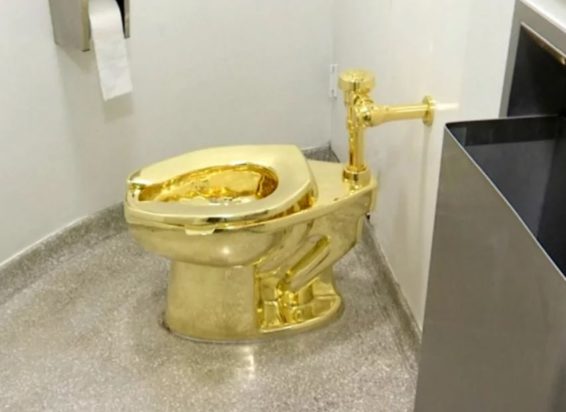 Η λεκάνη, από χρυσό 18 καρατίων, ήταν πλήρως λειτουργική και η αξία της υπολογίζεται στις 4,8 εκατ. λίρες (περίπου 6 εκατ. ευρώ). Είχε τοποθετηθεί στο Παλάτι Μπλένιμ, έναν σημαντικό τουριστικό προορισμό και Μνημείο Παγκόσμιας Κληρονομιάς της UNESCO, στο πλαίσιο της έκθεσης ενός Ιταλού καλλιτέχνη.