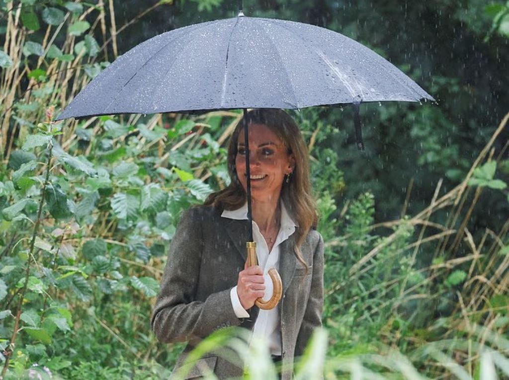 Το ντύσιμό της ήταν κομψό καθώς επέλεξε ένα καφέ σακάκι φορεμένο πάνω από ένα λευκό πουκάμισο, το οποίο συνδύασε με μαύρο παντελόνι και καφέ μπαλαρίνες. Για να ολοκληρώσει την εμφάνισή της, φόρεσε ένα κολιέ με τα αρχικά των τριών παιδιών της: του πρίγκιπα Τζορτζ, της πριγκίπισσας Σάρλοτ και του πρίγκιπα Λούις.