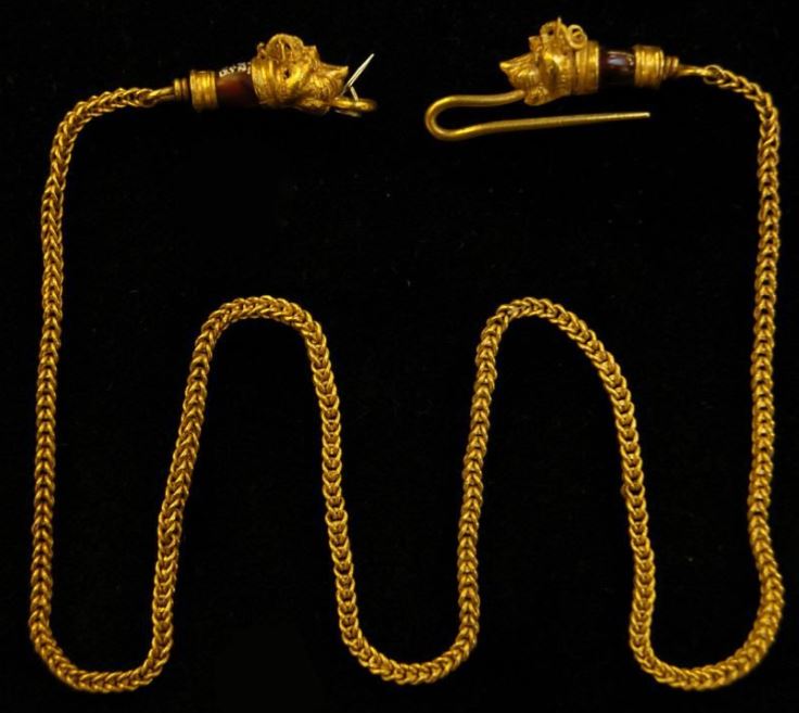 Σε μία προσπάθεια να εντοπίσει τις κλεμμένες αρχαιότητες, το Βρετανικό Μουσείο έδωσε σήμερα στη δημοσιότητα φωτογραφίες παρόμοιων αντικειμένων, απ’ αυτά που έχει στις συλλογές του, όπως για παράδειγμα ένα χρυσό βραχιόλι, έναν σφραγιδόλιθο ή ένα περιδέραιο διακοσμημένο με αγκράφες σε σχήμα λεοντοκεφαλής.