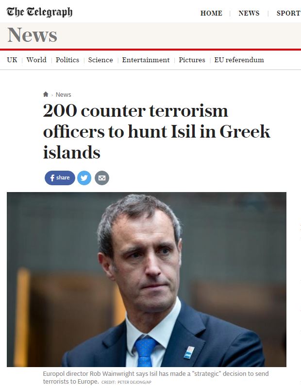 Όπως αναφέρει ο επικεφαλής της Europol Ρομπ Γουέινραϊτ υπάρχουν εξτρεμιστές που χρησιμοποιούν πλαστά διαβατήρια στην προσπάθεια τους να φτάσουν στην Ευρώπη και υποδύονται τους πρόσφυγες.
