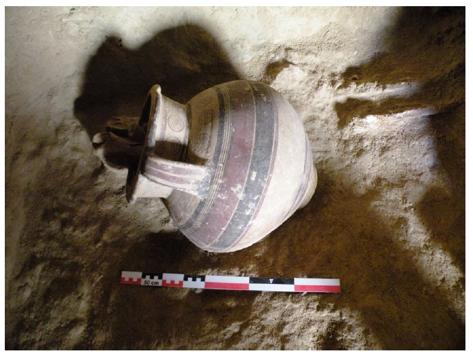 Σύμφωνα με το Τμήμα Αρχαιοτήτων Κύπρου τα κεραμικά αγγεία που βρέθηκαν μέσα στο θάλαμο και το δρόμο του τάφου χρονολογούνται στην Κύπρο-Αρχαϊκή Ι περίοδο. Επίσης, βρέθηκαν πολλά λεπτότεχνα, εισηγμένα, φοινικικά αγγεία, όπως αμφορείς, πρόχοι Δίχρωμης και Ερυθρόχριστης κεραμικής και πιάτα τύπου «Samaria ware».