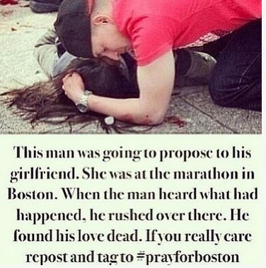 Στις 16 Απριλίου, μία ημέρα μετά τις βομβιστικές επιθέσεις στον Μαραθώνιο της Βοστώνης, έγραψε: