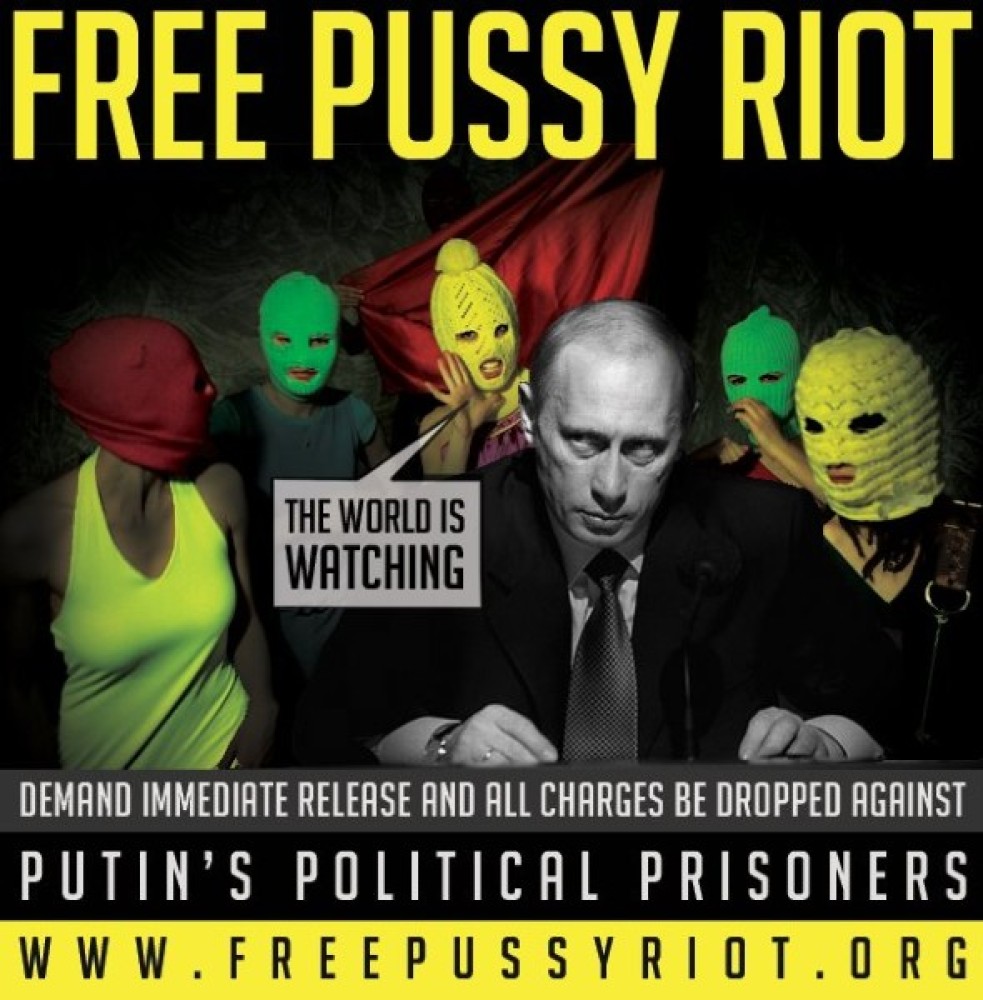 To Facebook έγινε τόπος…καταγγελιών για τον Vladimir Poutin. Οι θαυμαστές του συγκροτήματος Pussy Riot, στέλνουν το δικό τους μήνυμα στον Ρώσο Πρόεδρο. Δεν μπορούν να αντέξουν ότι το αγαπημένο τους συγκρότημα είναι πίσω από της φυλακής τα σίδερα…Δείτε πώς “την λένε” στον Vladimir Poutin.