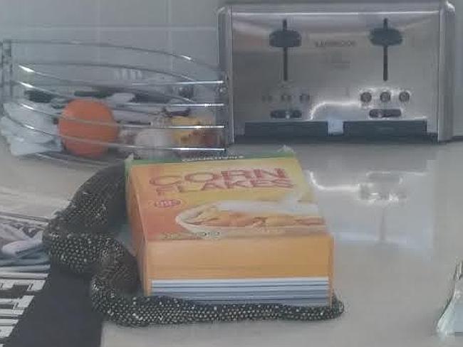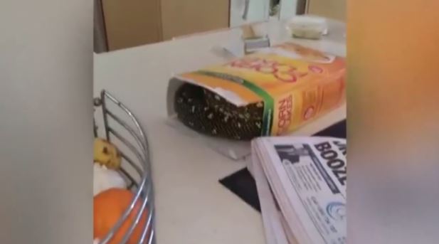Ένας πύθωνας δύο μέτρων βρέθηκε στον πάγκο της κουζίνας και είχε μπει στο κουτί των δημητριακών.