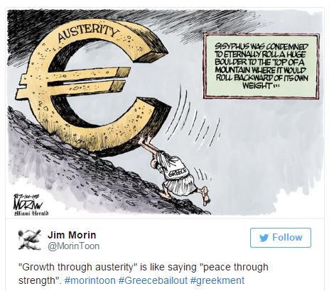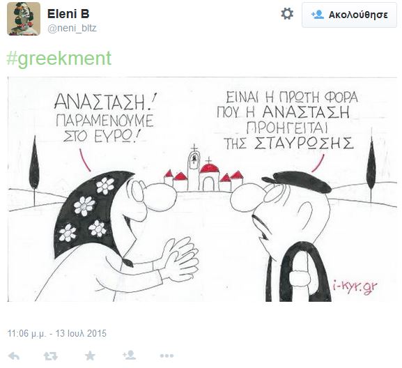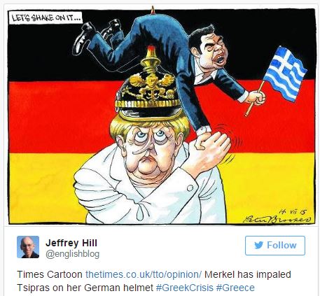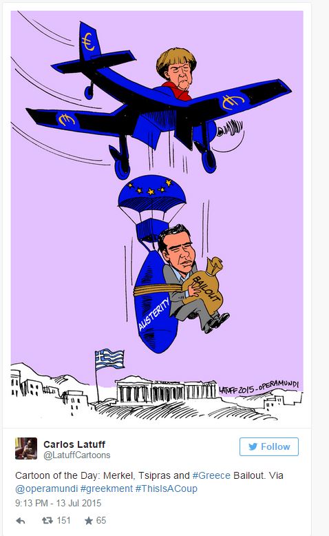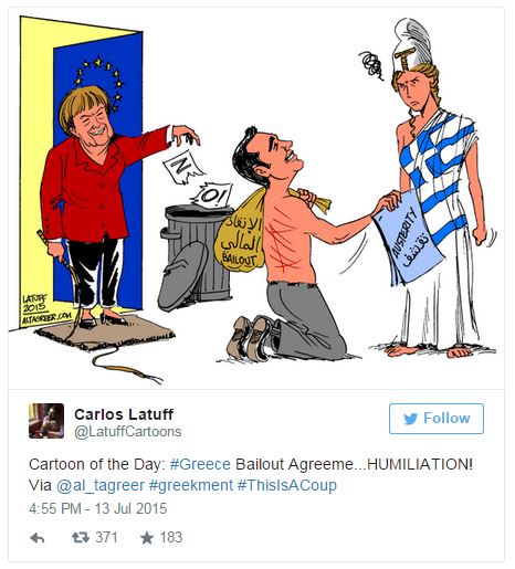 Την υποχώρηση Τσίπρα στις εκβιαστικές πιέσεις των δανειστών καταγράφουν σκίτσα στο #greekment που ταξιδεύουν μέσα από το διαδίκτυο.