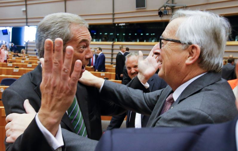 Τετ α τετ με τον επικεφαλής του ευρωσκεπτικιστικού κόμματος Ukip, της Βρετανίας, Νάιτζελ Φάρατζ, είχε νωρίτερα στο ευρωπαϊκό κοινοβούλιο, ο πρόεδρος της Κομισιόν της Κομισιόν Ζαν Κλοντ Γιούνκερ.