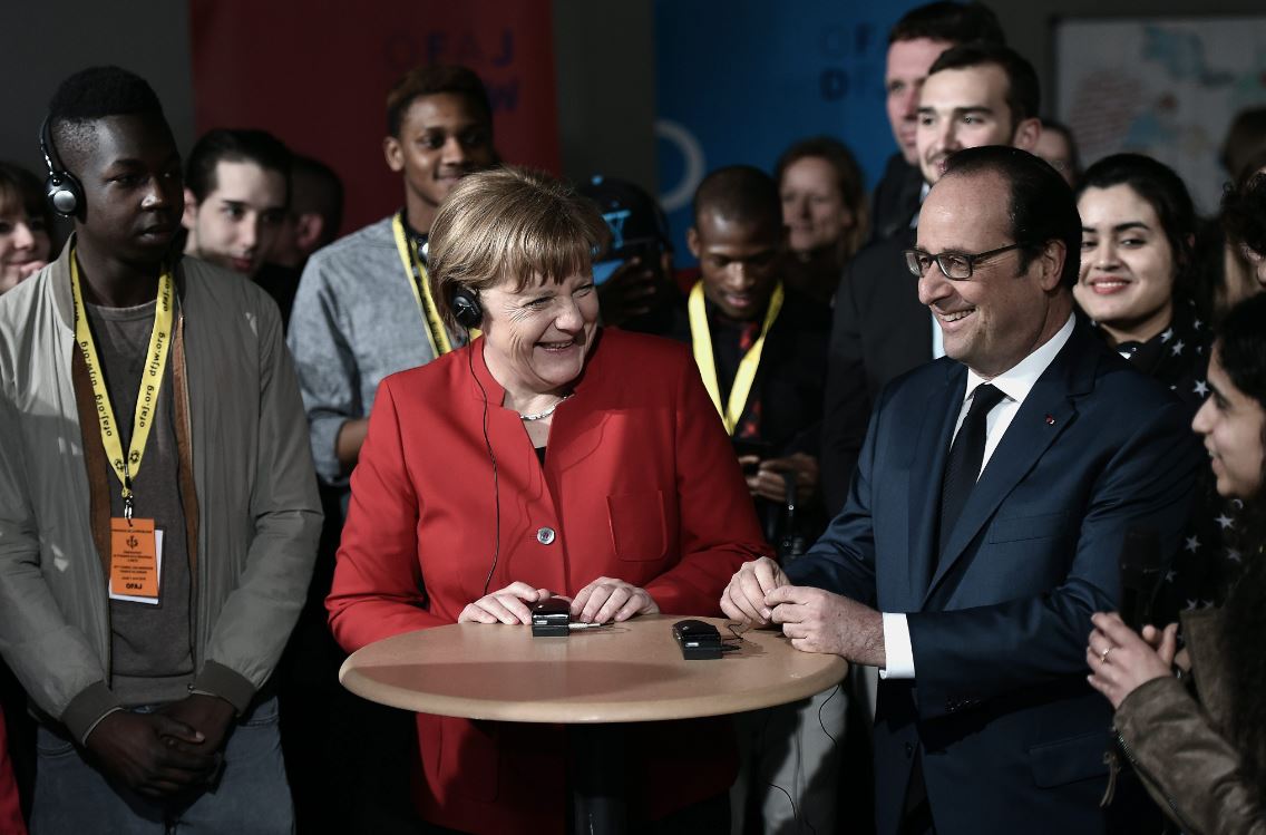 Σε πολύ ευχάριστο κλίμα πραγματοποιήθηκε η συνάντηση της Άνγκελα Μέρκελ, με τον Φρανσουά Ολάντ, στο Μετς της Γαλλίας, ενώ όπως φαίνεται και στις φωτογραφίες, τόσο η Γερμανίδα Καγκελάριος, όσο και ο Γάλλος Πρόεδρος, ξέσπασαν σε γέλια κατά τη διάρκεια ανταλλαγής απόψεων που διοργανώθηκε από το γαλλο-γερμανικό Γραφείο Νεότητας.