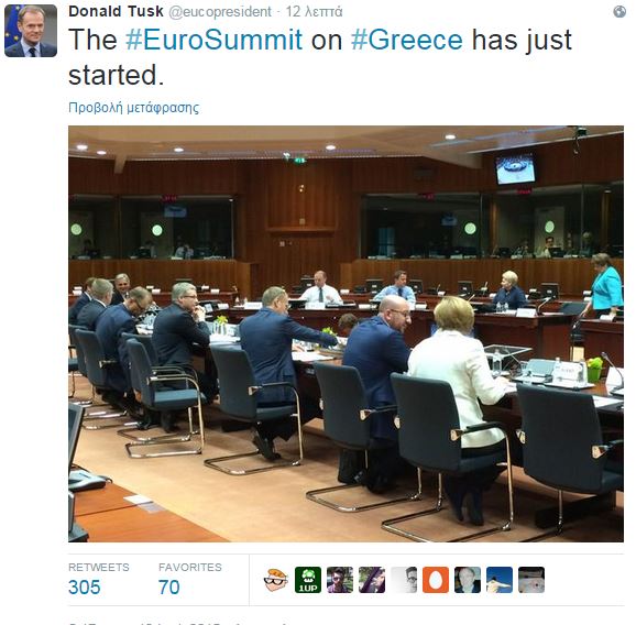 Την έναρξη των εργασιών ανακοίνωσε και ο πρόεδρος του Ευρωπαϊκού Συμβουλίου, Ντόναλντ Τουσκ, με ένα tweet, το οποίο συνόδευε μια φωτογραφία μέσα από τη Σύνοδο.