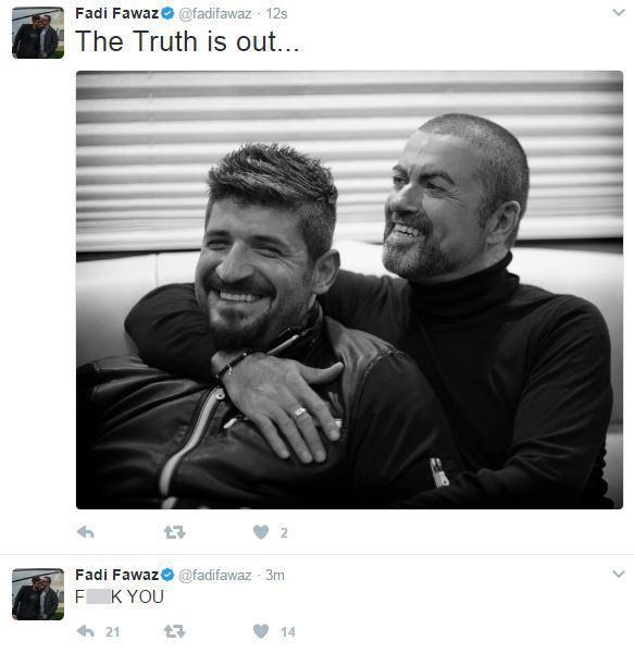 Ξέσπασε στο Twitter μετά το επίσημο πόρισμα για την αιτία θανάτου του Τζορτζ Μάικλ ο σύντροφός του, Φαντί Φαουάζ.Λίγο μετά την επίσημη ανακοίνωση του ιατροδικαστή, Ντάρεν Σέλτερ ότι ο Τζορτζ Μάικλ έφυγε από τη ζωή από παθολογικά αίτια, ο Φαουάζ έστρεψε τα βέλη του κατά όλων όσοι τον κατηγόρησαν πως είχε άμεση εμπλοκή στον θάνατο του. Κατά καιρούς είχε γραφτεί ειδικά στα βρετανικά tabloids ότι ο τραγουδιστής υπέκυψε από υπερβολική δόση ναρκωτικών με ευθύνη και του Φαουάζ. Έτσι ο Φαουάζ έγραψε στον λογαριασμό του στο Twitter: «Αντα γαμ…τε. Η αλήθεια φάνηκε», ενώ ταυτόχρονα ανήρτησε και μία φωτογραφία του με τον Τζορτζ Μάικλ αγκαλιά.Όπως ανακοίνωσε νωρίτερα ο επικεφαλής ιατροδικαστής Ντάρεν Σέλτερ, ο θάνατος του Τζορτζ Μάικλ προήλθε από την αδύναμη καρδιά του και το πρόβλημα με το ήπαρ που αντιμετώπιζε. Συγκεκριμένα, έπασχε από μυοκαρδιοπάθεια και μυοκαρδίτιδα, καθώς και από ηπατική στεάτωση (λιπώδες ήπαρ).Δείτε τις αναρτήσεις του Φαουάζ: