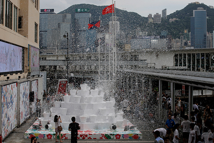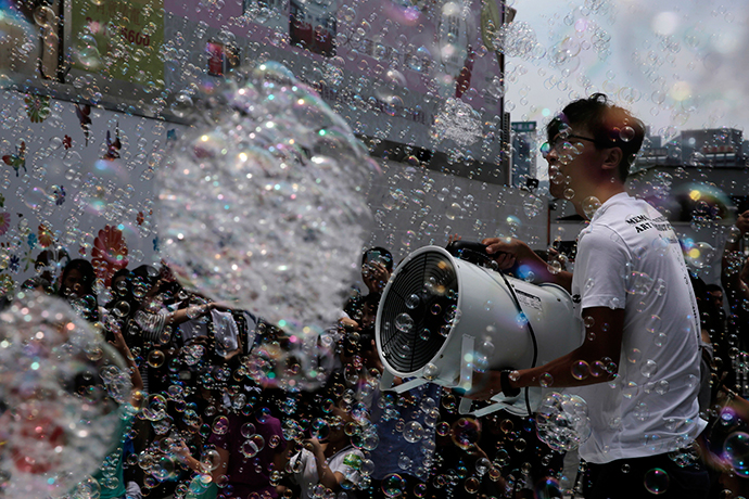 Εκατομμύρια φούσκες «πλημμύρισαν» τον ουρανό του Χονγκ Κονγκ και πέταξαν ανάμεσα στους ουρανοξύστες, στα πλαίσια εικαστικής έκθεσης Ιάπωνα καλλιτέχνη, που έκανε τα εγκαίνιά της.