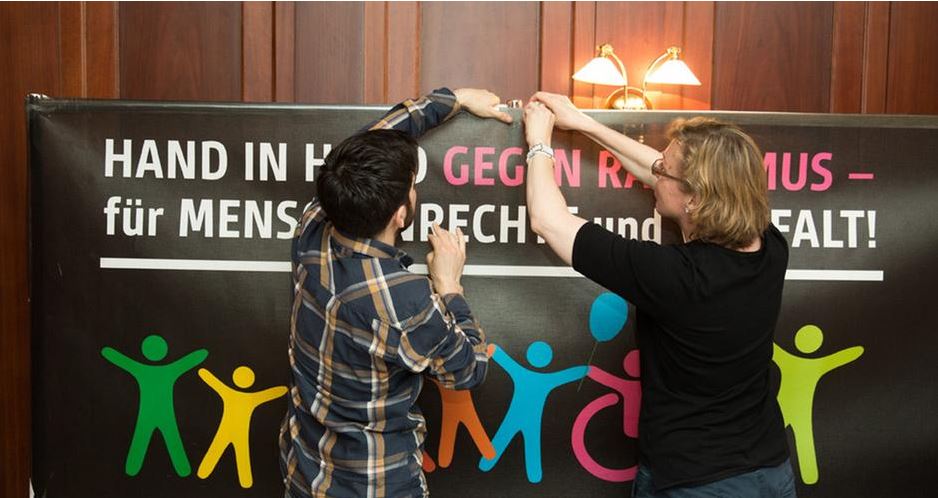 Αντιδρώντας στα φαινόμενα αυτά, οργανώσεις όπως η Διεθνής Αμνηστία, η Pro Asyl, η Γερμανική Συνομοσπονδία Συνδικάτων (DGB) , η Brot fur die Welt (Ψωμί για τον κόσμο), το κεντρικό συμβούλιο των μουσουλμάνων και η προτεσταντική εκκλησία αποφάσισαν να οργανώσουν ένα σαββατοκύριακο διαδηλώσεων με σύνθημα «Χέρι-Χέρι κατά του Ρατσισμού», την παραμονή της Διεθνούς Ημέρας των Προσφύγων.