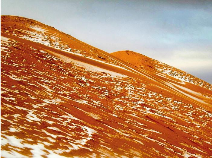 Εντυπωσιακές φωτογραφίες τράβηξε ένας ερασιτέχνης φωτογράφος στην έρημο Σαχάρα, όπου χιόνισε μετά από περίπου 40 χρόνια.