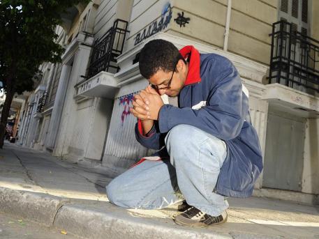 Σε αυτή τη φωτογραφία εικονίζεται ο Αιγύπτιος, Adam Fekry, να προσεύχεται στο σημείο όπου έχει ξυλοκοπήθει άγρια από μέλη της Χρυσής Αυγής -σύμφωνα με τη Bild.