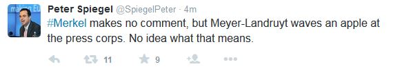Χωρίς να κάνει καμία δήλωση αποχώρησε από την συνάντηση η Γερμανίδα Καγκελάριος, Άνγκελα Μέρκελ, αναφέρει σε ανάρτηση του o δημοσιογράφος των Financial Times, Peter Spiegel.
