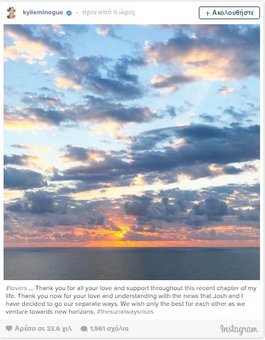 «Σας ευχαριστώ για την αγάπη και την κατανόηση που δείχνετε καθώς ο Josh και εγώ αποφασίσαμε να ακολουθήσουμε ξεχωριστούς δρόμους. Ευχόμαστε μόνο τα καλύτερα ο ένας στον άλλον καθώς συνεχίζουμε σε νέους ορίζοντες.