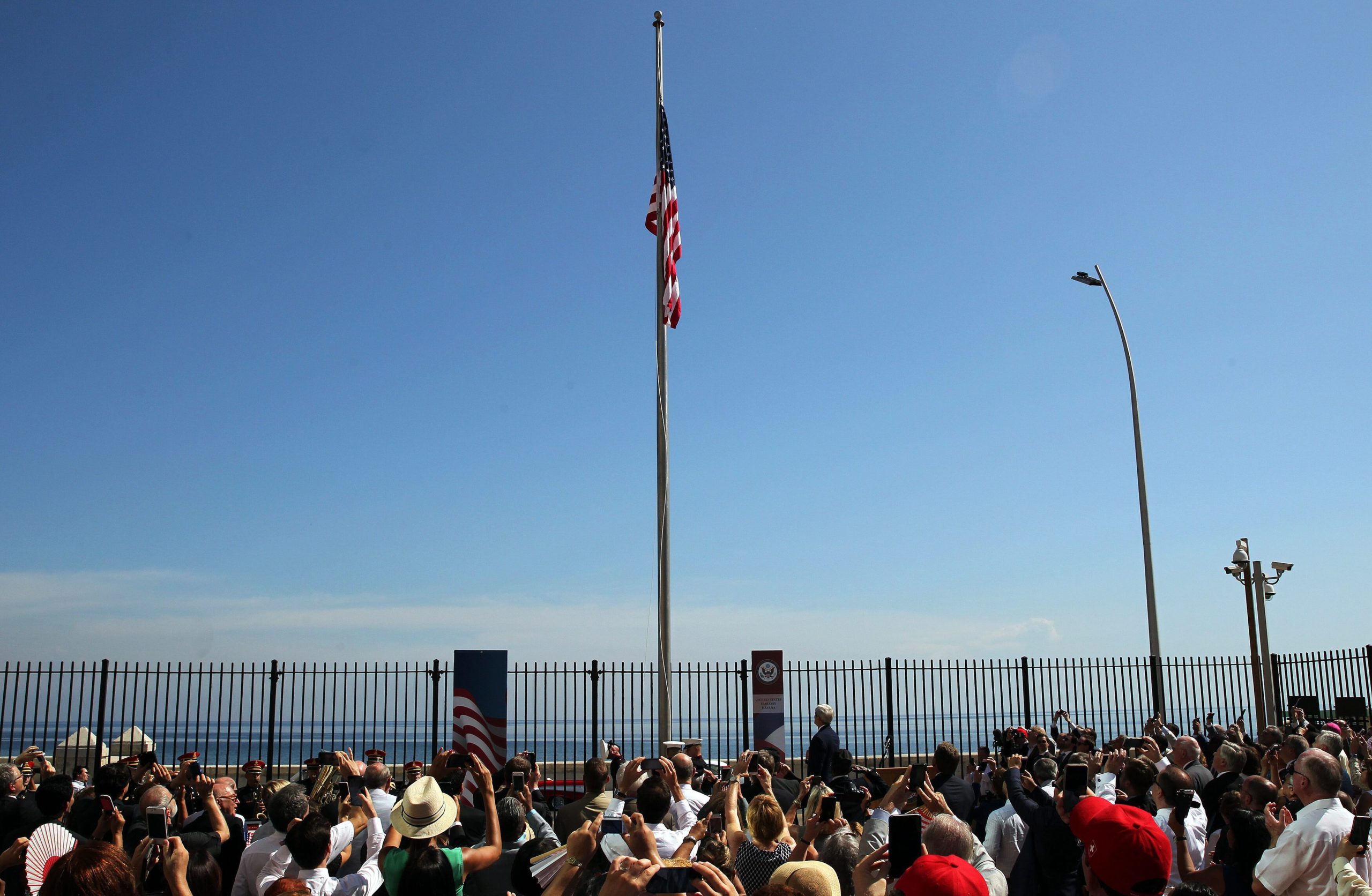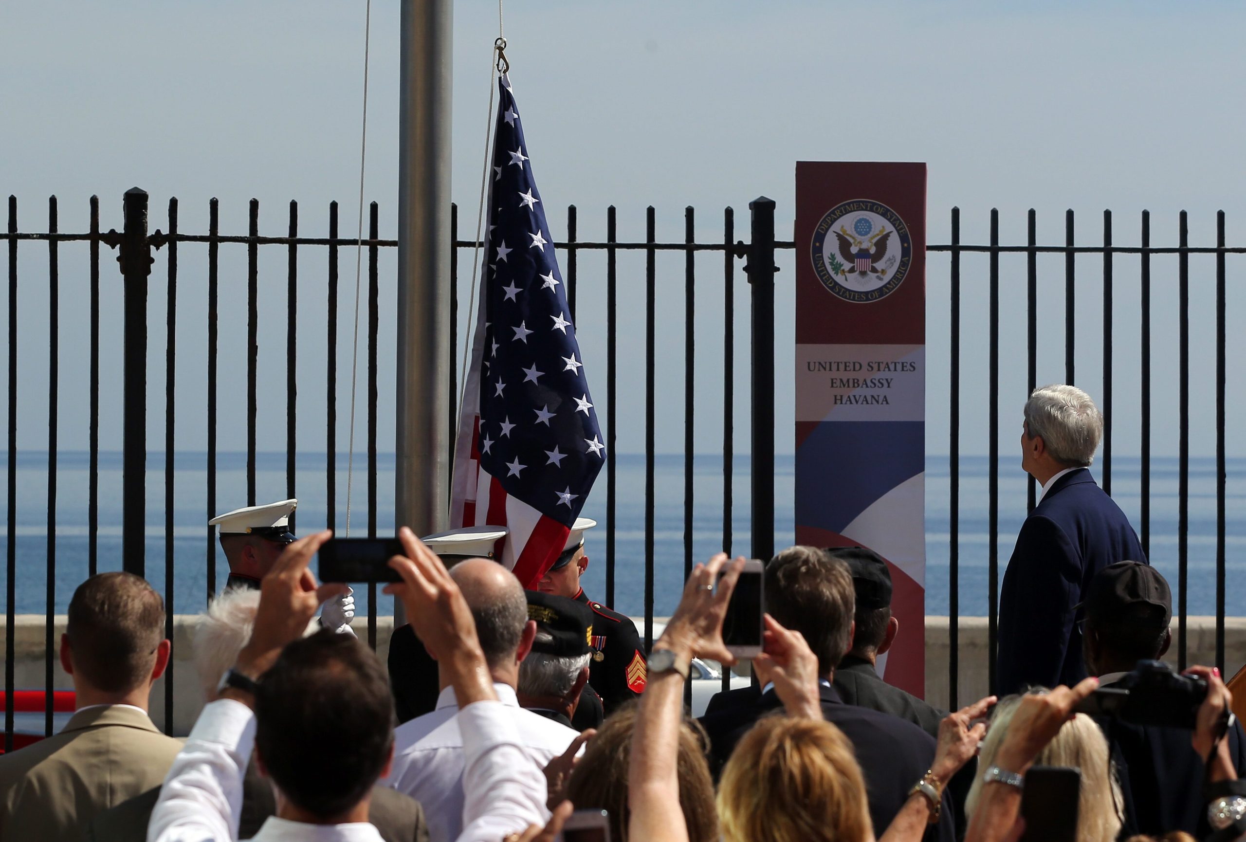 Αμερικανοί πεζοναύτες ύψωσαν την αμερικανική σημαία στην πρεσβεία των ΗΠΑ στην Κούβα για πρώτη φορά μετά από 54 χρόνια, σε μια τελετή με επικεφαλής τον αμερικανό υπουργό Εξωτερικών Τζον Κέρι η οποία σηματοδότησε την αποκατάσταση των διπλωματικών σχέσεων ανάμεσα στην Ουάσινγκτον και την Αβάνα.