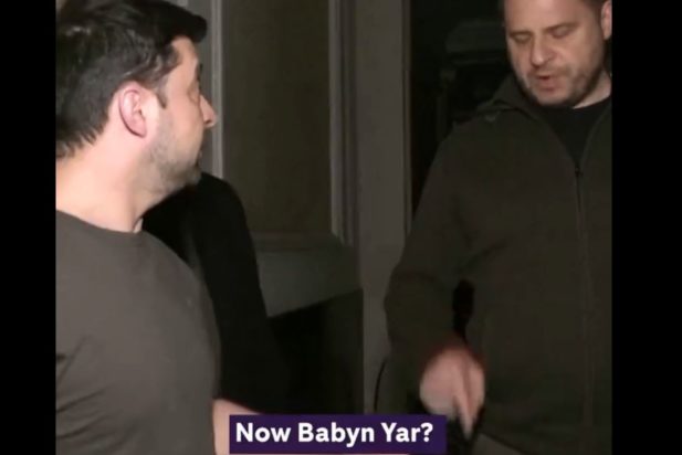 Εκείνη την ώρα, ο Ουκρανός πρόεδρος έδινε συνέντευξη στο βρετανικό κανάλι, με τον επικεφαλής του γραφείου του, Αντρέι Γέρμακ να τον ενημερώνει για τον βομβαρδισμό του πύργου τηλεπικοινωνιών.