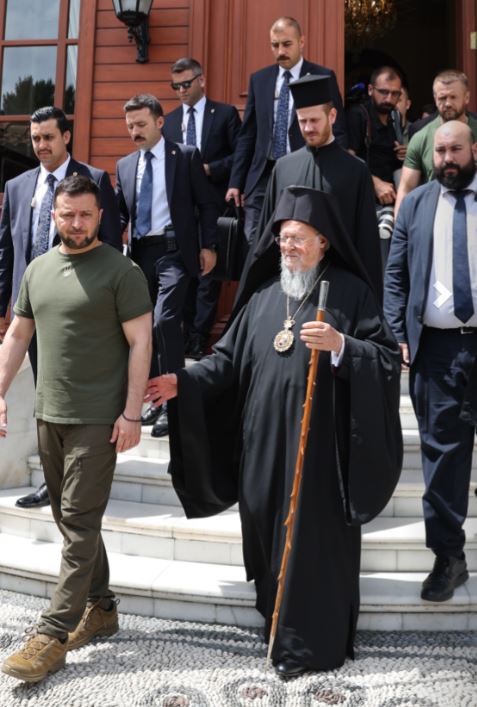 Ο Ζελένσκι, ο οποίος συναντήθηκε με τον Τούρκο πρόεδρο Ρετζέπ Ταγίπ Ερντογάν το βράδυ της Παρασκευής, μετέβη σήμερα το πρωί στην έδρα του Οικουμενικού Πατριαρχείου στην Κωνσταντινούπολη, σύμφωνα με δημοσιογράφους του Γαλλικού Πρακτορείου (AFP).