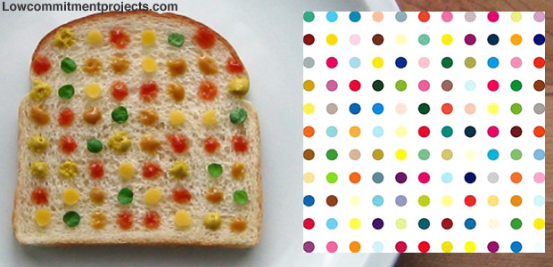 Αμερικανοί καλλιτέχνες, Brittany Powell και Tae Kitakata, έχουν αποφασίσει να φτιάχνουν ένα έργο κάθε Δευτέρα όλο το 2012!Η τελευταία τους λοιπόν απόπειρα είναι τα σάντουιτς που βλέπετε τα οποία αντιγράφουν κάποιους πίνακες μεγάλων ζωγράφων, όπως Piet Mondrian, Damien Hirst, Jackson Pollock και Mark Rothko…