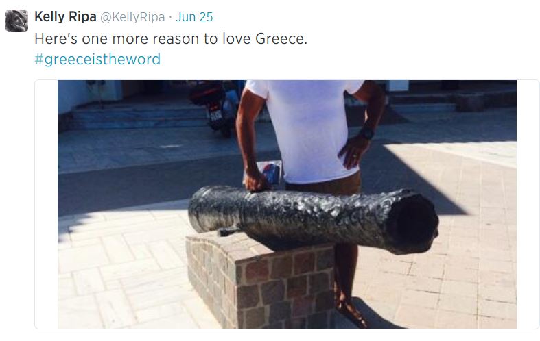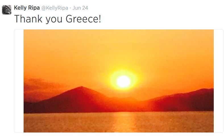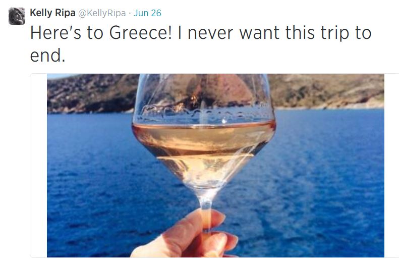 Η Kelly Ripa ανεβάζει συνεχώς στο Twitter φωτογραφίες από τις διακοπές της στα ελληνικά νησιά, εξηγώντας γιατί δεν ήθελε να τελειώσει το ταξίδι της…