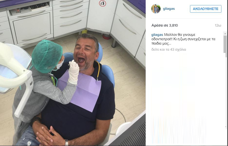Στον προσωπικό του λογαριασμό στο Instagram ανέβασε μια τρυφερή φωτογραφία με τον γιο του, όπου βρίσκονται σε ένα οδοντιατρείο, τονίζοντας χαρακτηριστικά στη φωτογραφία πως “η ζωή συνεχίζεται”. «Μάλλον θα γίνουμε οδοντίατροι!!! Κι η ζωή συνεχίζεται με τα παιδιά μας…», ήταν το μήνυμά του.