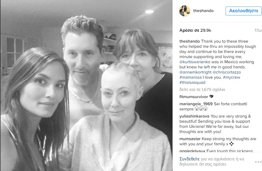 Δύσκολες στιγμές περνά η “Μπρέντα” του Μπέβερλι Χιλς καθώς δίνει μάχη με τον καρκίνο. Η Σάνεν Ντόχερτι μοιράστηκε με τους φίλους της στο Instagram, μία φωτογραφία με ξυρισμένο το κεφάλι της, ευχαριστώντας θερμά τους ανθρώπους που βρίσκονται στο πλευρό της.
